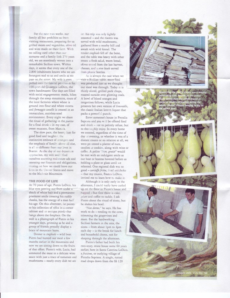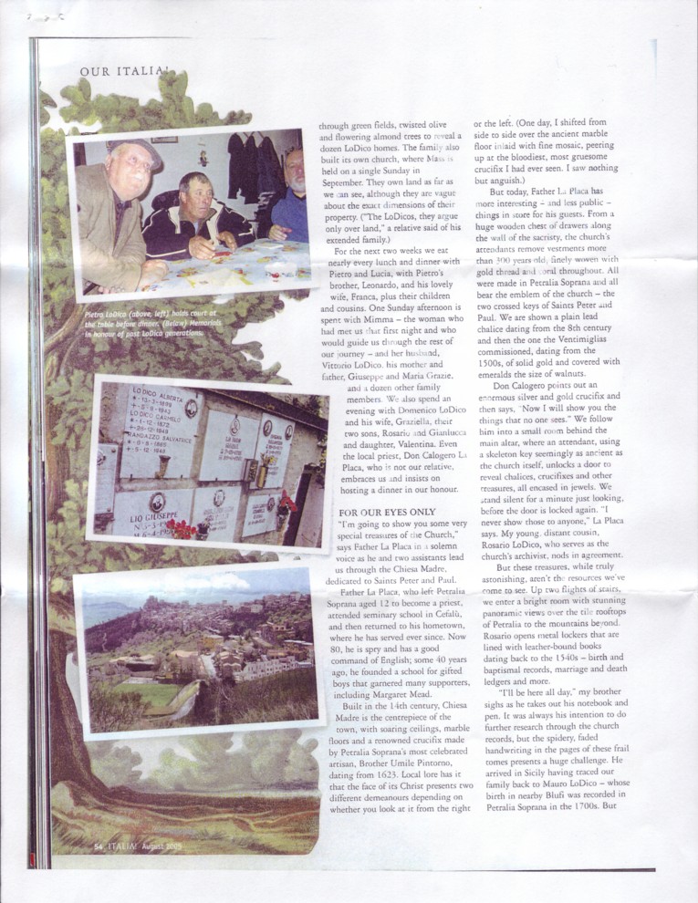 The following article was written by my brother John LoDico. It describes his experiences, traveling with me to Sicily in April of 2005