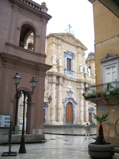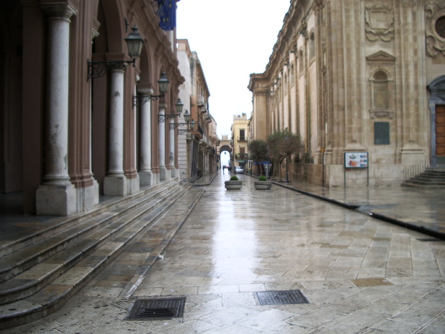 I slept in until 10:00am and rose to a wet windy day, perfect for exploring Marsala. I packed up a few things and drove south to see this city. The drive took about 40 minutes and there was little traffic. The old section of Marsala is located just up from the coastline of the city. Parking close to the main gate, I walked the streets of the old quartiere. The shops wee mostly closed and the traffic light so I had plenty of time to myself without feeling rushed. One could easily see the Arabic influence in these western Sicilian towns. Palms, cactus, eucalyptus, and oleander were scattered throughout the streets and roads. There was so much here that reminds me of my home in California. The weather is identical to where I lived. Wet, rainy spring days followed by hot, dry summers and a temperate winter. I left the cool rainy spring of California to arrive in the cool rainy spring of western Sicily.