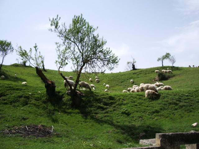 After another stroll around the old quarter of Trapani we loaded up the car and began our trip to Petralia Soprana. The weather was cold and blustery as it was raining and foggy along the autostrada through Palermo and Termini Imerese. We took the autostrada towards Catania and discussed our adventure while taking in the view of the Madonie mountains shrouded in fog and rain clouds. Exiting at Resuttano, we would up SS120 through the town of Alimena and into Bompietro. I showed John and Elaine the first street as one enters the town from the south: Via LoDico. Outside of Bompietro we came across a shepherd and his flock of sheep blocking the road. As he crossed our path and headed up into the green hills of the rolling countryside, so did we continue our journey into the dense fog towards Petralia.