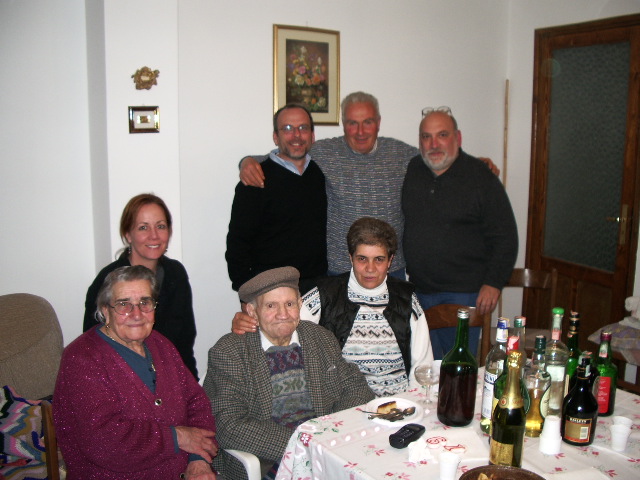 Soon the children: Mariella and Rosalina returned from school and Leonardo and Franca joined us for the meal. We feasted on pasta with eggplant, grilled sausages, veal, salad and Pietro's wine. Dessert was cheese and fruit followed by sweets. Hardly able to rest we agreed to meet the Lucia and Pietro back in town so we could meet Lucia's parents. Lucia's father would be 91 on Sunday.