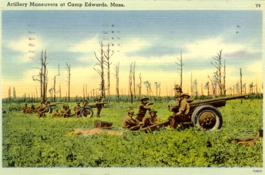 In 1933, Camp Edwards, on upper Cape Cod, was created as a training camp for the Massachusetts National Guard and for soldiers in the regular army. As early as the summer of 1936, Guard units began formal training at the new camp, setting up large tent camps just north of the proposed cantonment area. These early troops were generally poorly equipped, often wearing World War I uniforms and using wooden guns or Enfield rifles for training exercises.