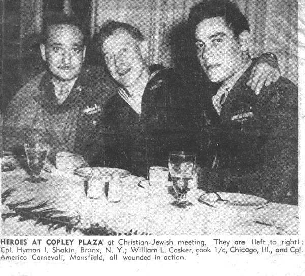 The Navy enlisted included two of the Thayer brothers: Norman and Raymond Thayer. Angelo "Dynamite" Cataloni joined the Coast Guard on December 13. 1942. Americo "Mutt" Carnevali shipped out to the Pacific theater. William LoDico, son of my uncle Prospero (Joseph) LoDico, also joined the Navy.