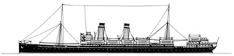 in 1907. Her details were - length 430 ft x beam 52.7 ft, two funnels,