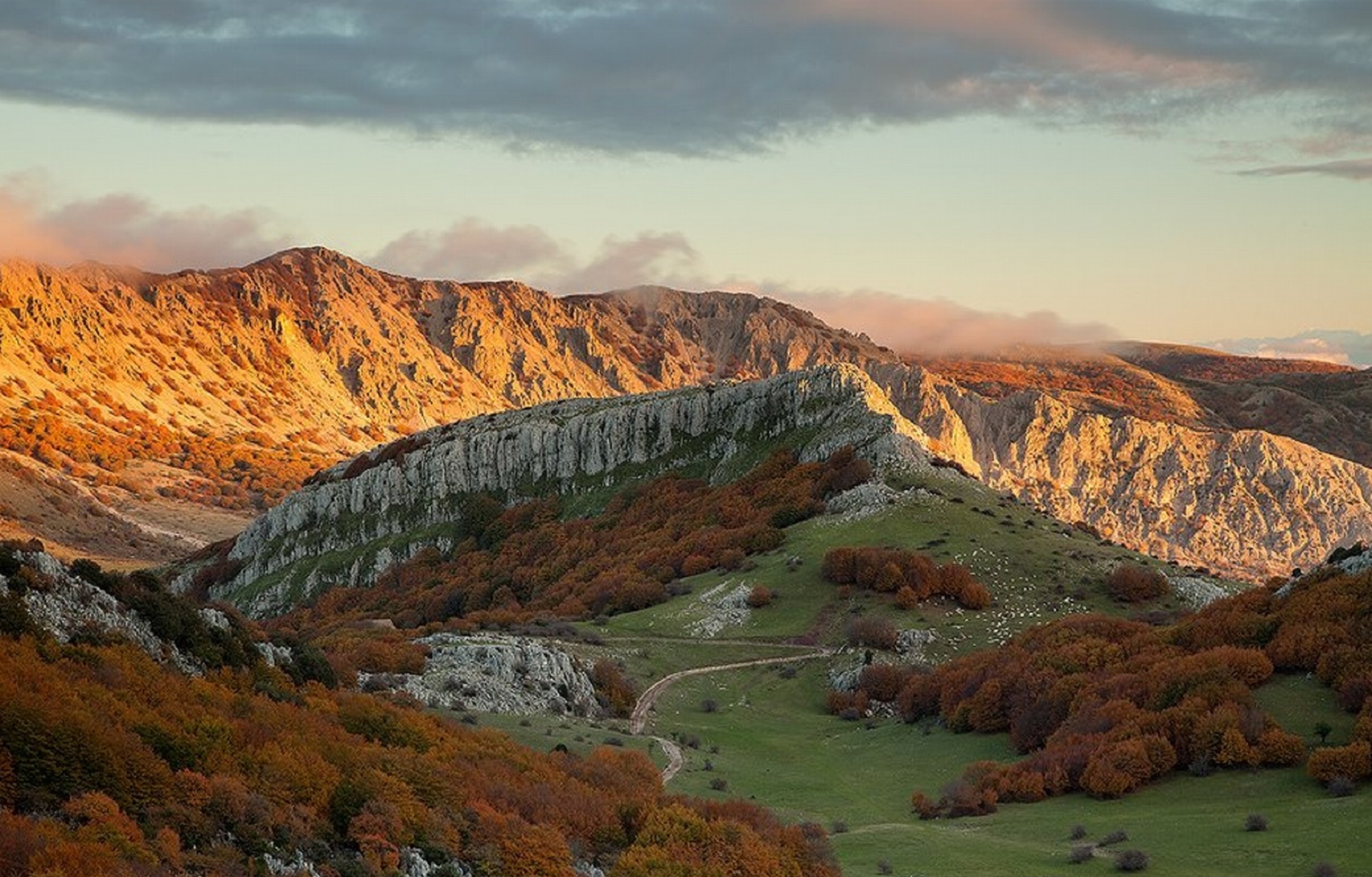 of the Nebrodi and Madonie, the deep canyons, up thrusted pink-tinged limestone