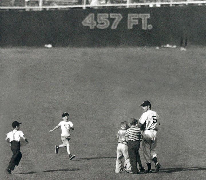 July 25, 1948. The game is held up in the 2nd, 4th, 5th, and 7th inning by kids seeking an autograph by Joe DiMaggio.