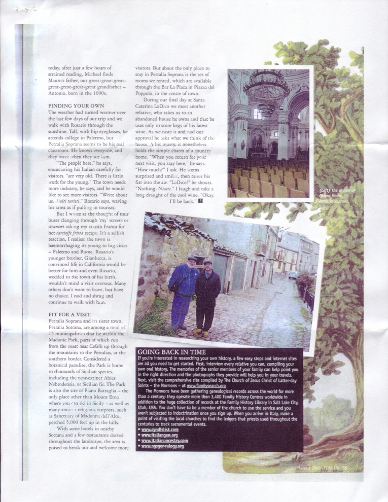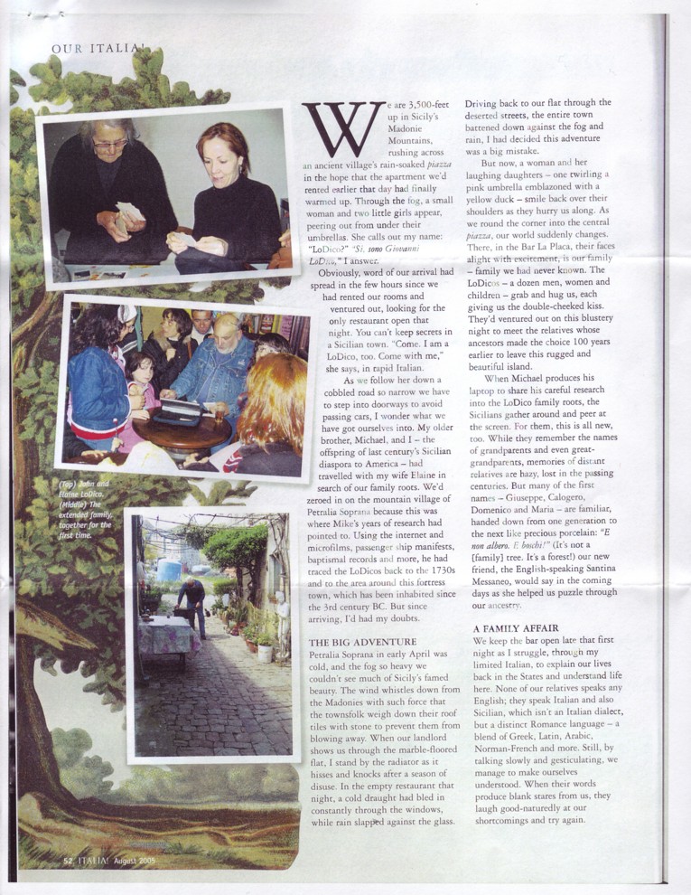 The following article was written by my brother John LoDico. It describes his experiences, traveling with me to Sicily in April of 2005