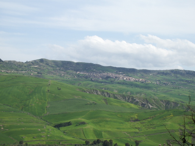Wednesday was my day to return to Marianopoli so I rose early, packed another lunch and was on the road at 8:30am. I took SS120 towards Alimena, hoping the road was finally open. With luck it was just being finished and I reached Resuttano, making good time as I headed towards Marianopoli. As I dropped in altitude from Petralia, it grew very warm and soon I had shed my jacket and hat as I entered Marianopoli and headed for the Municipo to look up Michela Vullo again. With luck she was at work and after some introductions she remembered me and told me others at work told her we were there last week. I handed her the CD with my Aunt Angelina's photos from 1955 of Marianopoli and the relatives and she scrolled through the photographs. She recognized many photos including her fathers and soon everyone in the office was looking at the photos and recognizing people they either knew or were related to. Soon Michela was calling people on the phone, as she was quite excited about the many photos I had shown her.