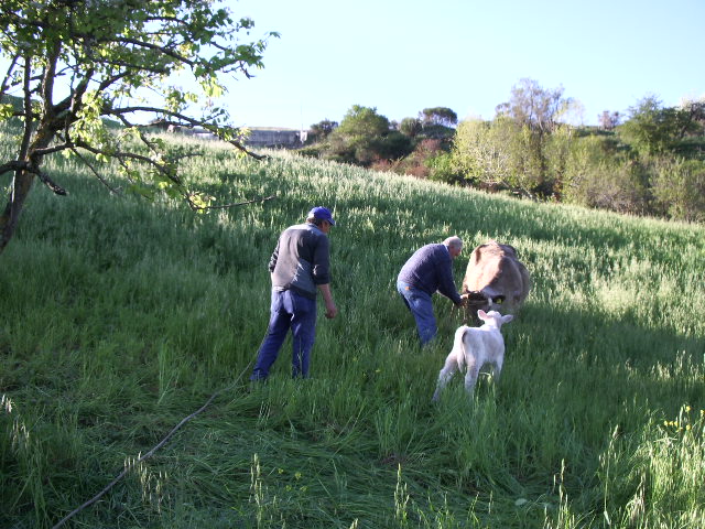 I gave Franca my American coffee canister as a gift and I also brought a bottle of grappa. Pietro and Leonardo invited me to milk a cow and we headed up to the top of the hill and into a pasture where grazed their twelve cows. Soon I was milking my first cow and the taste of warm milk wasn't too bad. It was a fun experience.