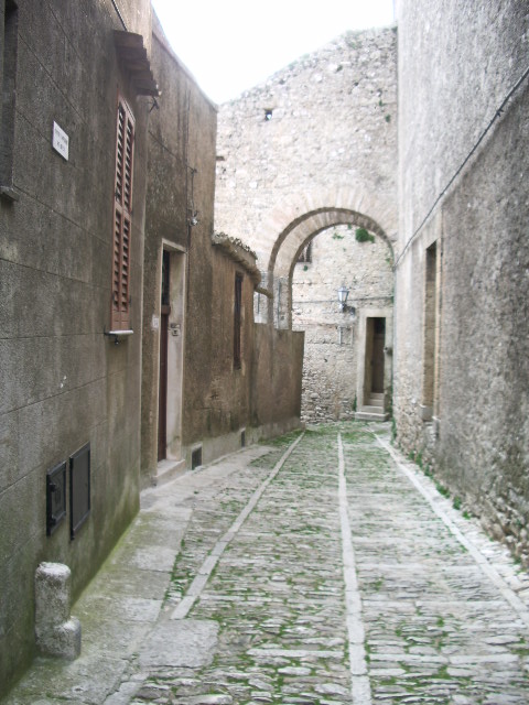 We then drove to the town of Erice in the mountains above Trapani. The winding wooded road took us up 750 meters above the coast for spectacular views of the city below. Words are hard to describe the beauty of Erice. Giovanni said Erice is the most beautiful town in all of Sicily and after walking it's streets I came to believe him. The history of Erice dates back to before Medieval times. The cobblestone paths and stone houses were ancient. Considered a fortress by the Greeks, Romans, and Spanish kings, the town was enchanting and the views breathtaking. Giovanni told me his father was mayor twice of Erice and as a child he grew up in the village. He showed me the park and gardens that he played in as a young boy.