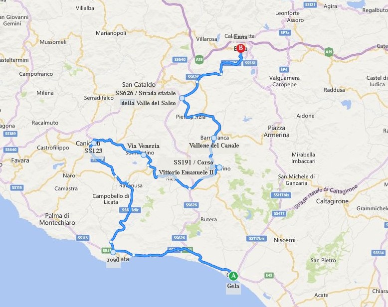 Gela to Enna