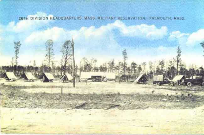 In 1933, Camp Edwards, on upper Cape Cod, was created as a training camp for the Massachusetts National Guard and for soldiers in the regular army. As early as the summer of 1936, Guard units began formal training at the new camp, setting up large tent camps just north of the proposed cantonment area. These early troops were generally poorly equipped, often wearing World War I uniforms and using wooden guns or Enfield rifles for training exercises.