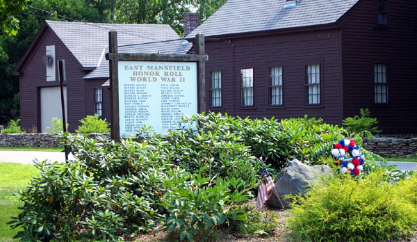 Mansfield erected one war memorial on the South Common. In East Mansfield, there is a dedication to the veterans of the Second World War. In the North End, on the North Common is the third memorial dedicated to 'America's greatest generation'.