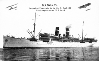 Built for Fabre Line, French flag, in 1902 and named Roma. Mediterranean-New